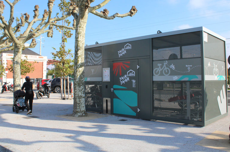 TXIK TXAK a installé 2 abris-vélo à proximité de la gare et de la halte routière de Saint-Jean-de-Luz/Ciboure. Avantages pour les utilisateurs : garer son vélo en toute sécurité, faire le lien avec d’autres modes de déplacement.