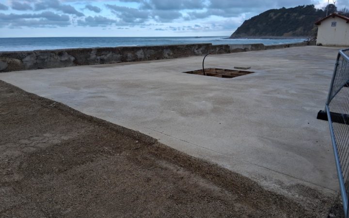 Plan plage Erromardie Reprise des travaux de réaménagement du perré d’Erromardie dans le cadre du réaménagement durable de la plage…