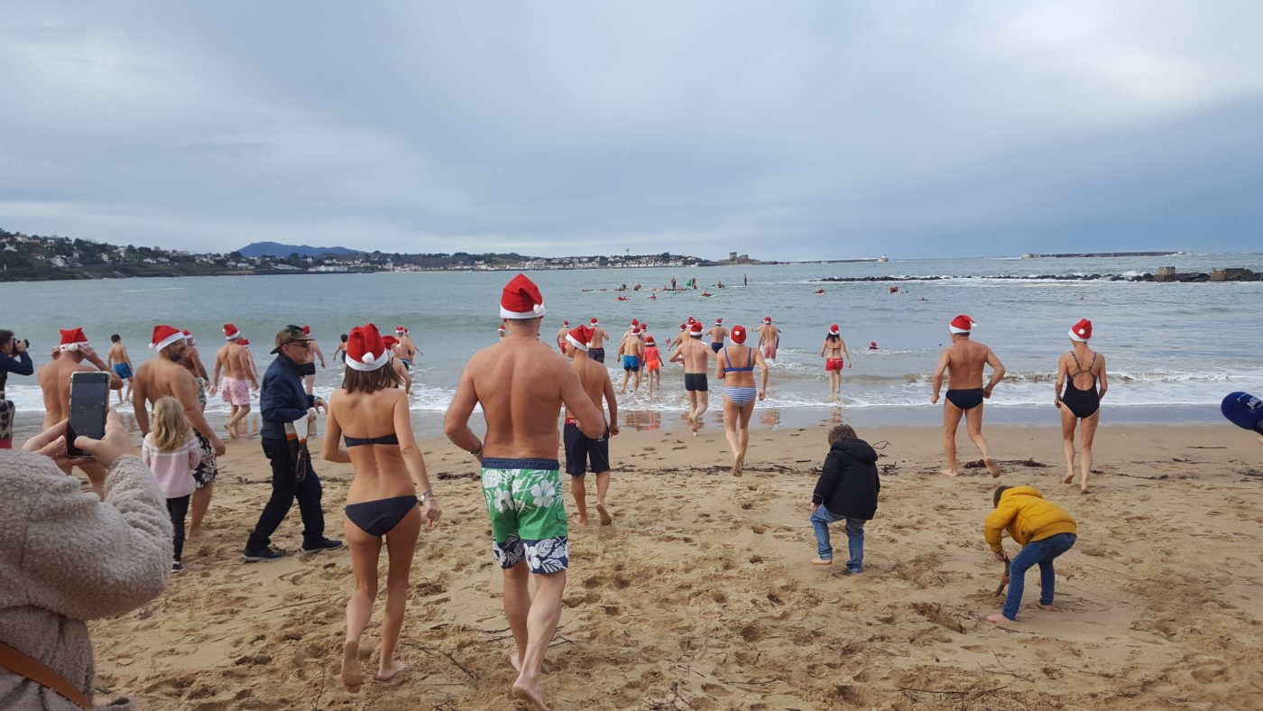Le bain de Noël a attiré une centaine de courageux venus en famille ou entre amis, dimanche 22 décembre. Quelques curieux étaient là aussi. Le top départ a été donné à 12h sur la grande plage à hauteur de l’antenne nautique. 16 degrés dans l’air et 14 degrés dans l’eau.