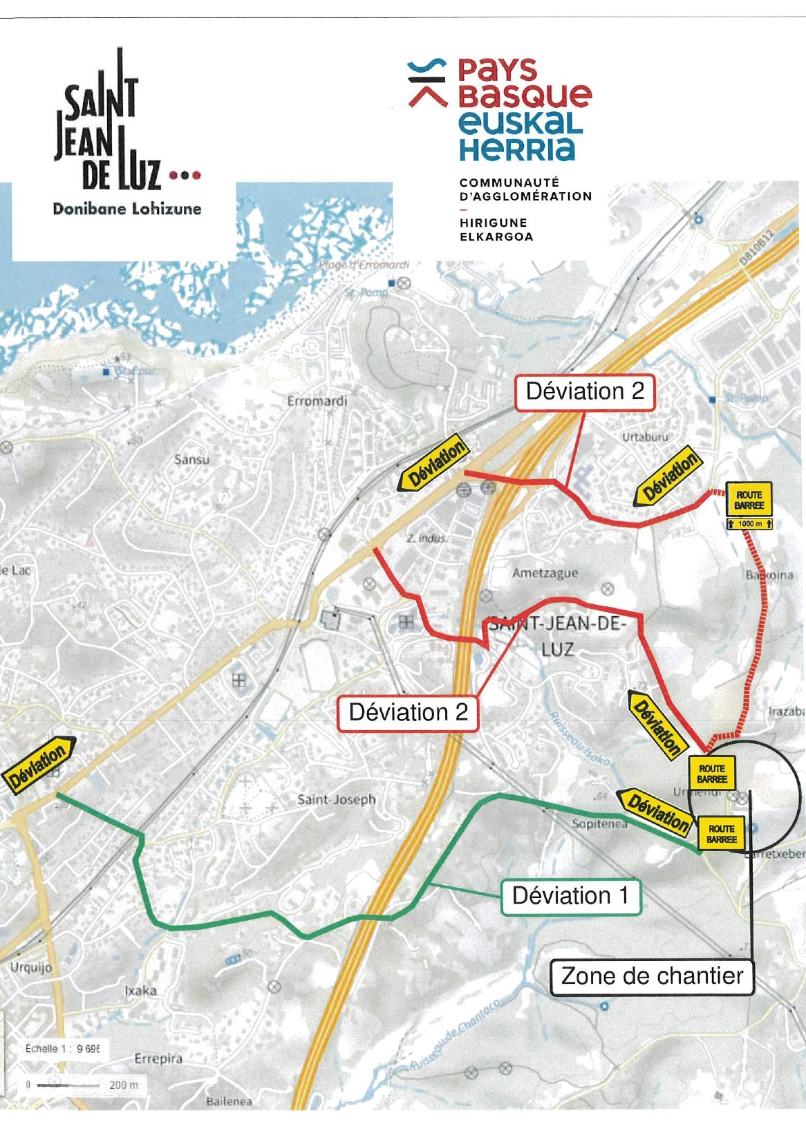 La Communauté d’Agglomération Pays Basque a engagé des travaux, pour les raccordements des canalisations, en sortie des réservoirs d’eau potable d’Ur Mendi jusqu’au 17 octobre 2025. Le chantier se situant au niveau du n° 143 du chemin d’lrachabal, des déviations sont mises en place.