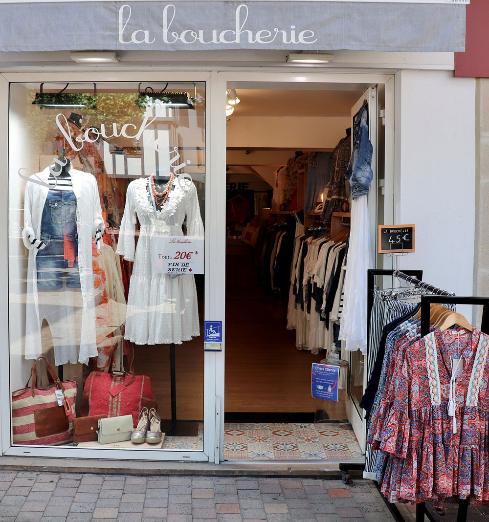 Boutique de prêt-à-porter pour femme, disposant de textile coloré et tendance.