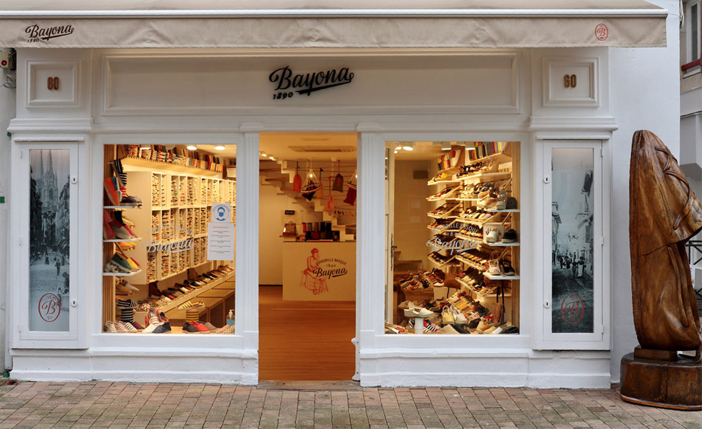 Parce que l’espadrille traditionnelle fait partie de patrimoine local , la marque BAYONA fondée en 1890, vous attend au cœur de Saint-Jean-de-Luz. Depuis plus de 40 ans, la famille Larralde amoureuse des espadrilles Bayona veille sur l’authenticité de sa fabrication artisanale « cousu main ».