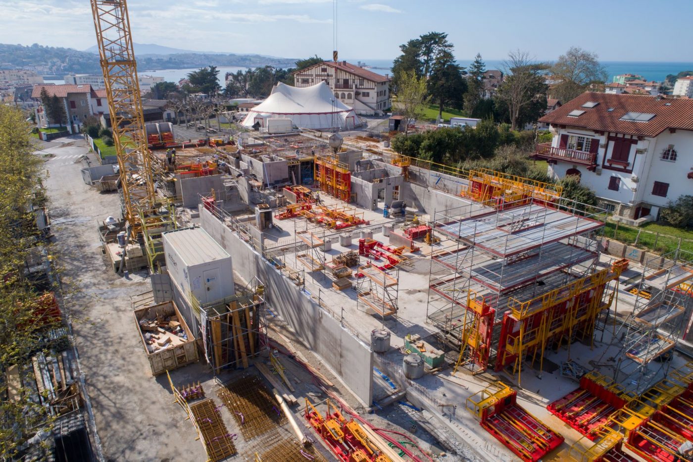 Côté Est, les murs de grande hauteur de la grande salle de spectacle et de ses espaces techniques commencent à s’élever également.