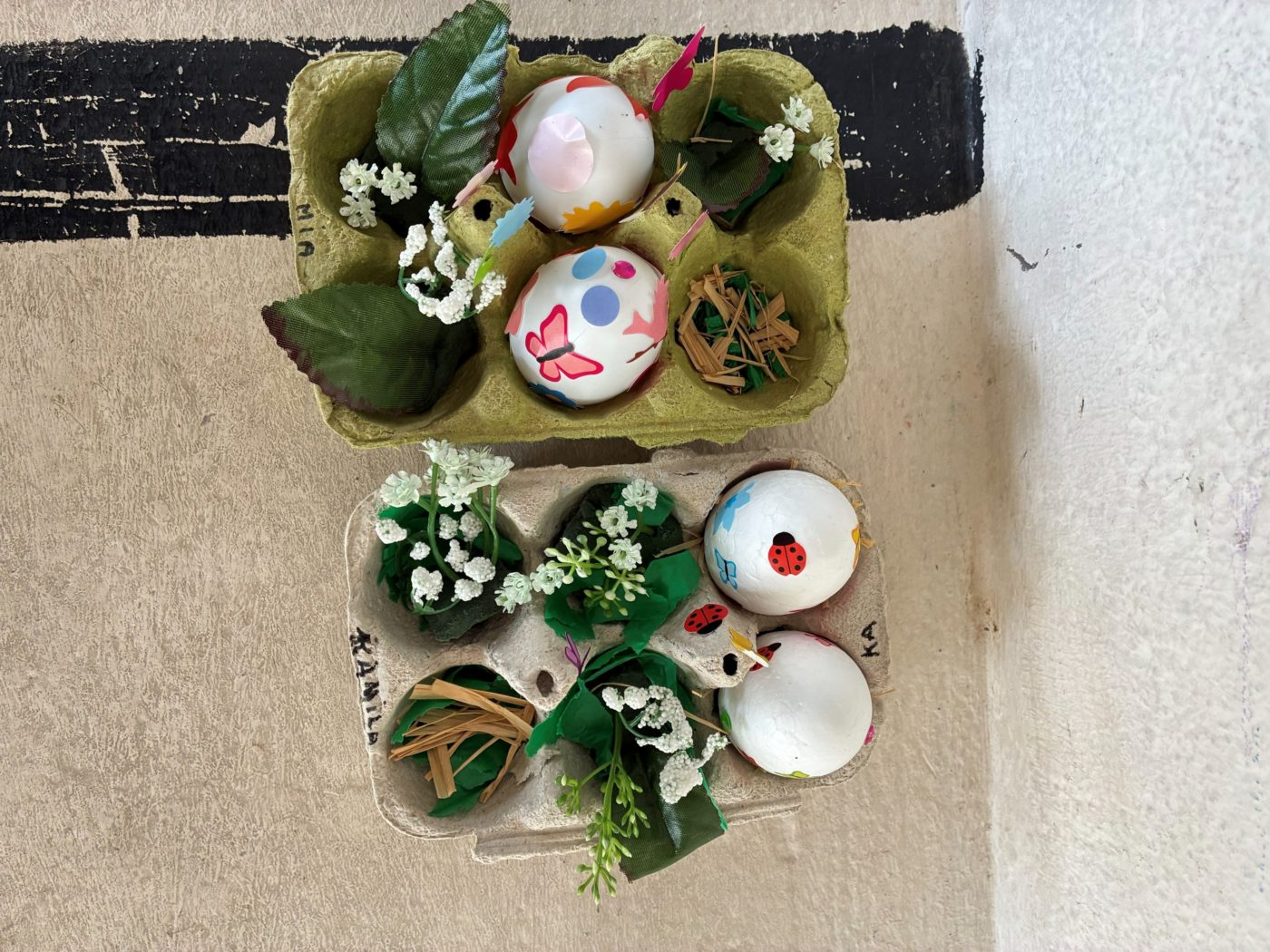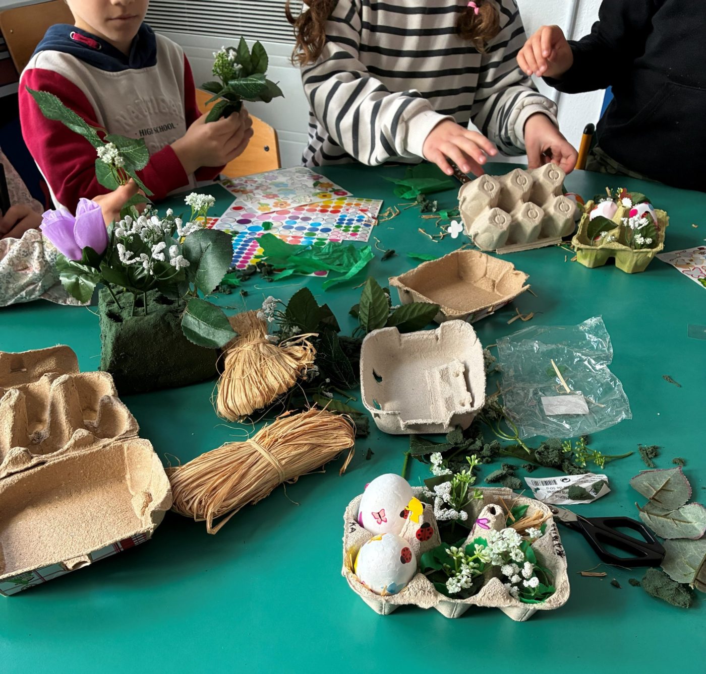 Créer, c’est aussi s’exprimer autrement. À l’approche de Pâques, les enfants se sont investis dans des ateliers colorés et minutieux. Au Centre, les “jardins fleuris” ont pris forme dans des boîtes à œufs soigneusement décorées. Ailleurs, les objets se transforment, les idées circulent, et chacun repart fier de sa création.
