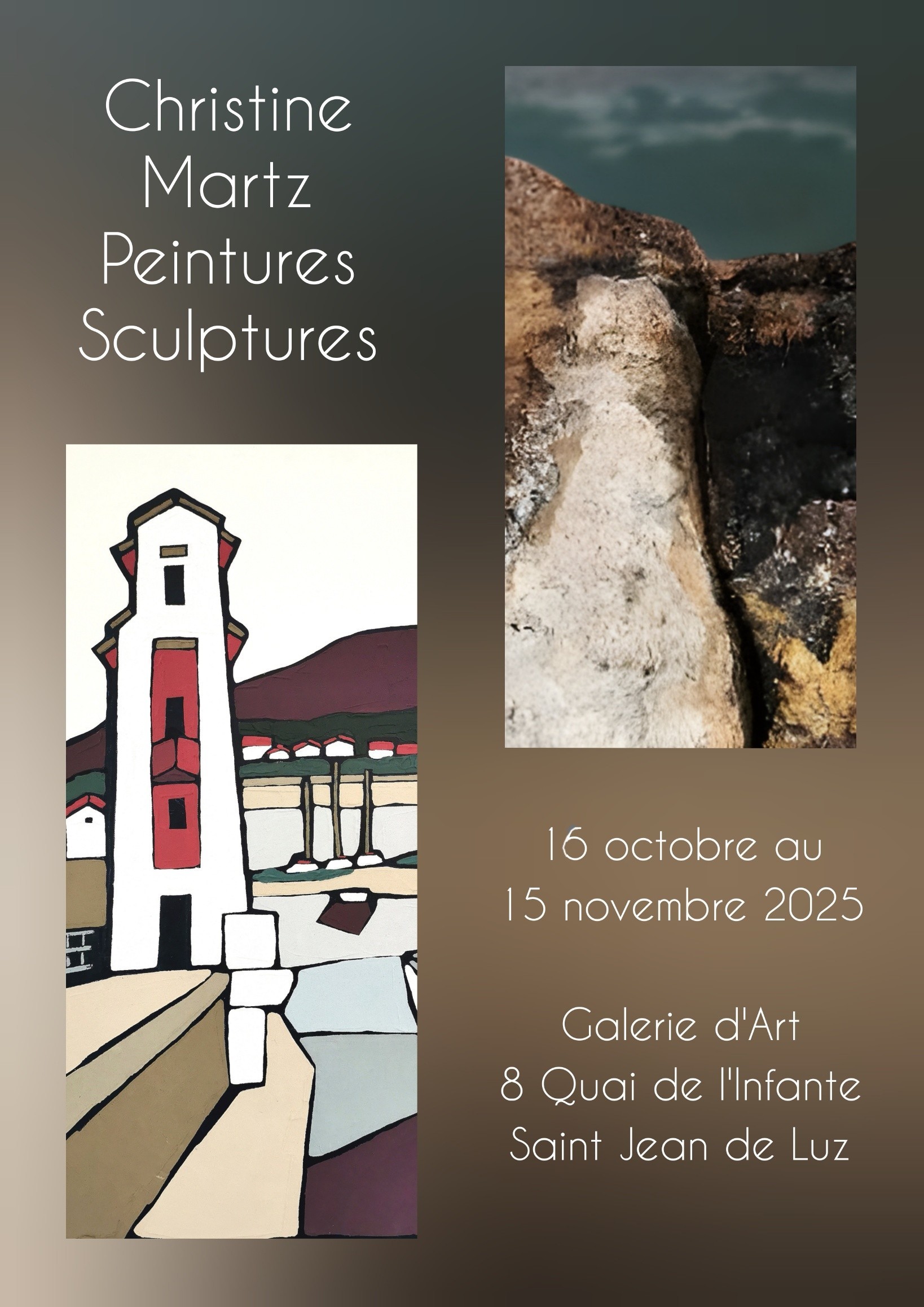 De retour à la galerie historique du Quai de l’Infante à Saint Jean de Luz, l’artiste Christine Martz vous partage ses dernières créations, autant de Rencontres Océanes fidèles à sa démarche actuelle. Les créatures du Gouf de Capbreton y côtoiront les animaux terrestres aux traitements préhistoriques, où le minéral s’harmonise avec le bois flotté rejeté par l’océan. Ces œuvres sont à découvrir dans un univers pictural particulier, exploitant un médium texturé propre à transcrire les sentiments de plénitude éprouvés face à la symphonie de couleurs de l’océan, déclinées au fil des saisons. Et pour parfaire cette visite, un ensemble de paysages portuaires luziens et des paysages lacustres stylisés vous attendent, entre peinture naïve et cubiste, découpant le paysage en une multitude de facettes propres à restituer l’essentiel de nos impressions.