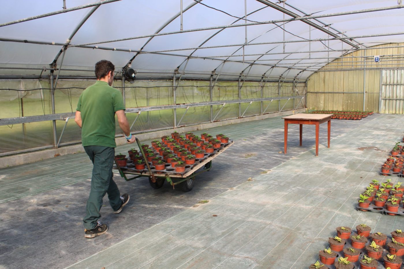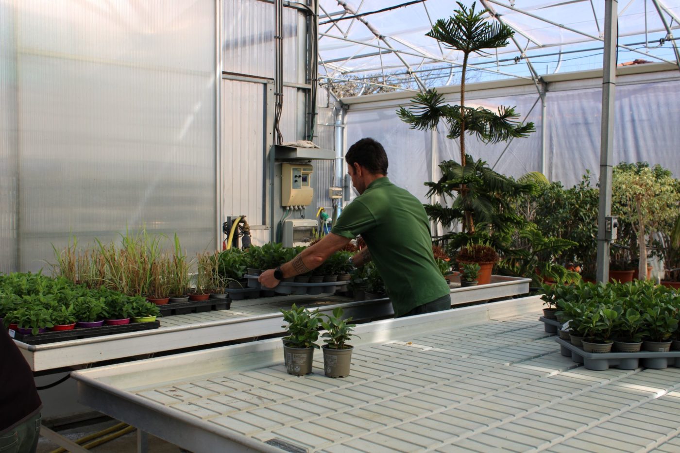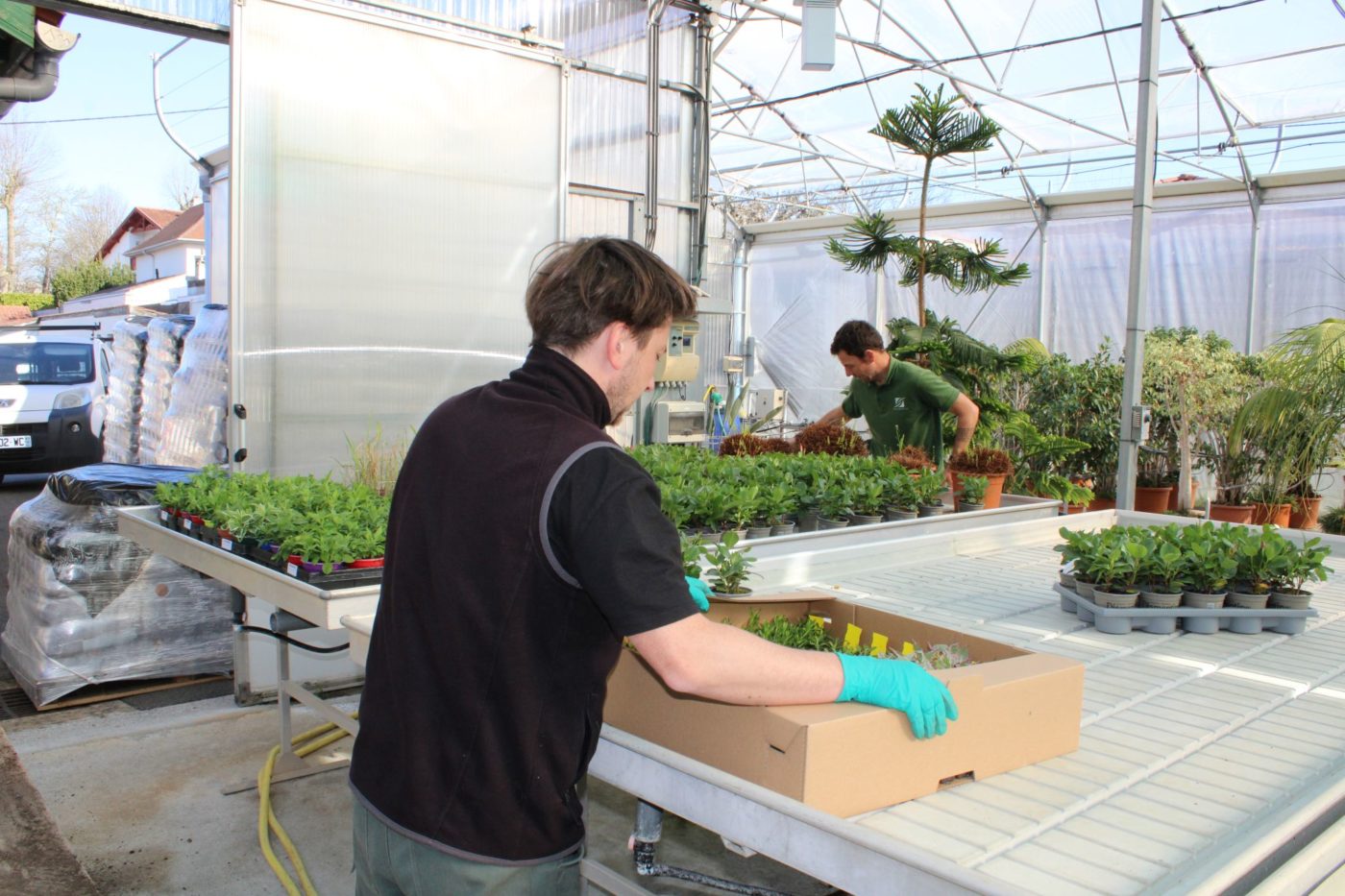 Le premier héberge les plantes destinées aux massifs et aux balconnières. C’est ici que tout commence : chaque année, 12 000 plants en micro-mottes sont repiqués et mis en serre dès le mois de mars. Ils y restent deux mois avant d’être plantés. Le cycle se répète à l’automne, portant le total annuel à 23 000 plants auxquels s’ajoutent 6000 bulbes.