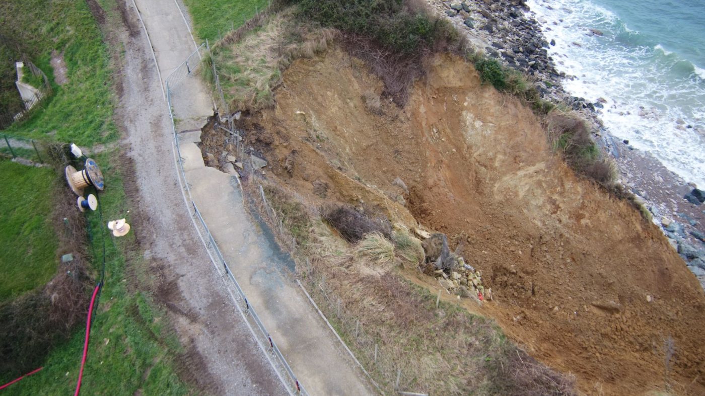 La qualité des matériaux de ce remblai, le ruissellement des eaux de surface et des eaux souterraines, la forte houle de l’océan et l’attaque répétée des vagues sont autant de facteurs qui, conjugués, avaient provoqué la destruction de l’exutoire et l’effondrement de la falaise.