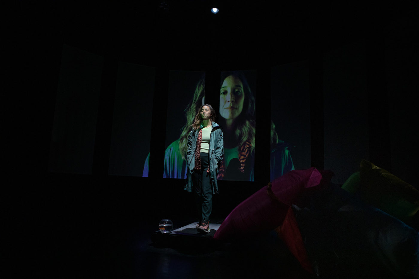 Une femme marche. Seule, dans un flux incessant de pensées inconscientes, elle fait le bilan de sa vie. Un récit qui, peu à peu, forme un portrait d’elle-même, de son entourage et, finalement, d’une génération née dans les années 80, ainsi que de notre époque. Une performance qui utilise la vidéo pour raconter le puzzle d’une vie à déchiffrer.