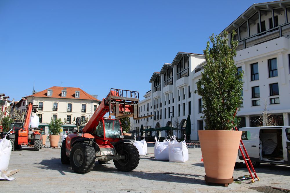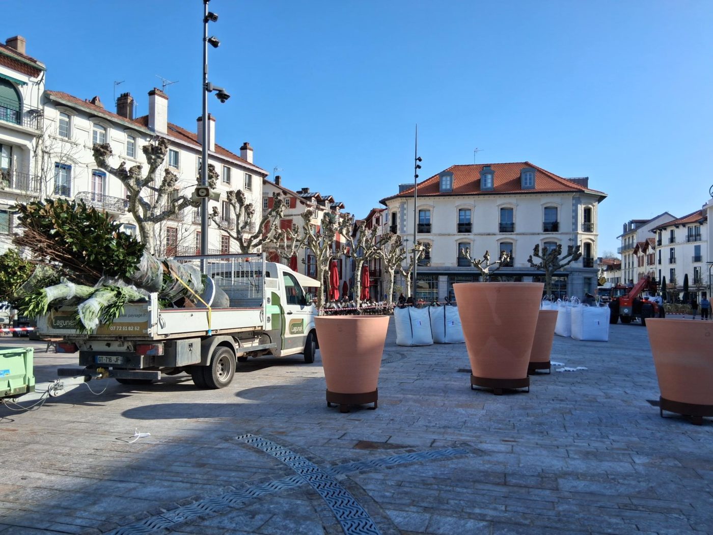 Dernier aménagement de la place Foch, 10 pots de fleurs ont été installés cette fin de semaine sur la place Foch. De grande et moyenne taille ils accueillent des arbustes aux feuillages différents (persistants et caduques) et aux floraisons qui s’étaleront dans l’année : magolias, largestroemia, arbousiers, laurier rose, houx d’ornement.